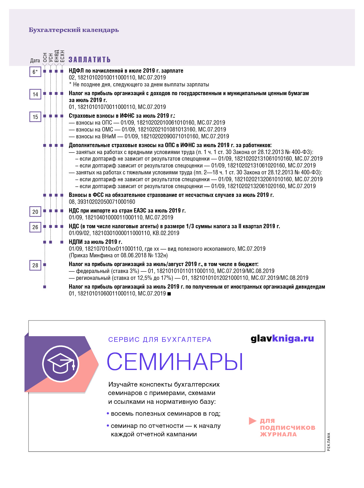 Июльская памятка для бухгалтера