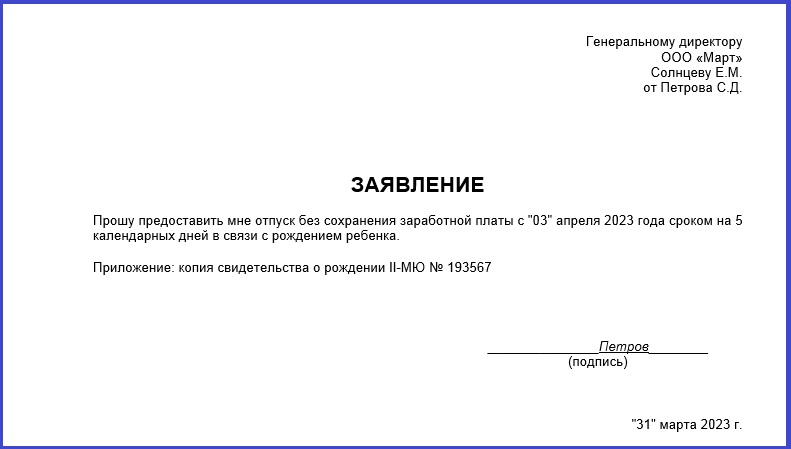 Заявление на отпуск: как правильно написать заявление на отпуск за свой счет
