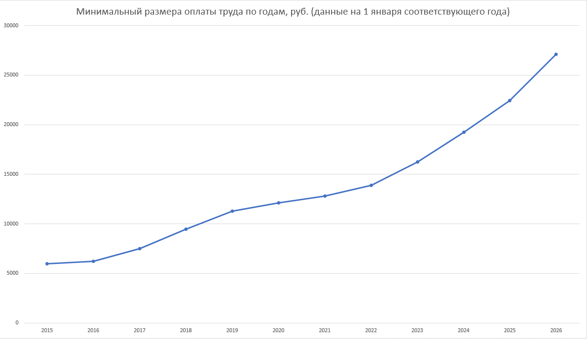 Минимальный размер оплаты труда или МРОТ – это установленный федеральным законом минимум оплаты труда в месяц, действующий одновременно на всей территории России (ст. 133 ТК РФ). На 2026 год он установлен в размере 27 093 руб. Посмотрим, от чего он зависит, на что влияет и какие еще аналогичные показатели существуют.