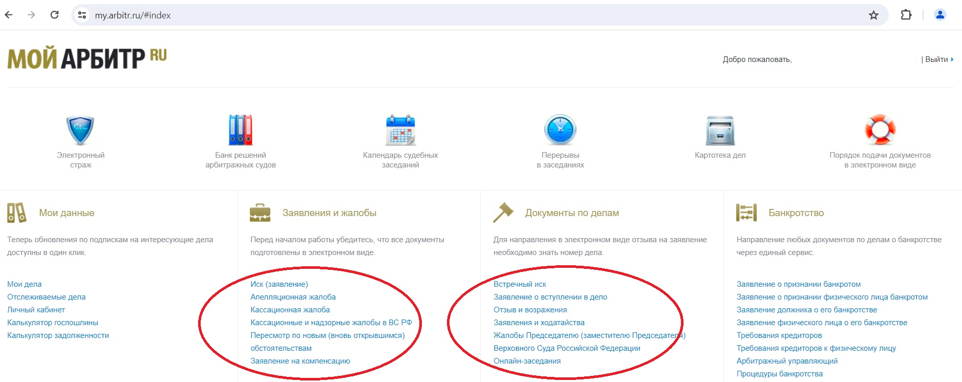 Какие заявления и жалобы можно подать через «Мой арбитр»