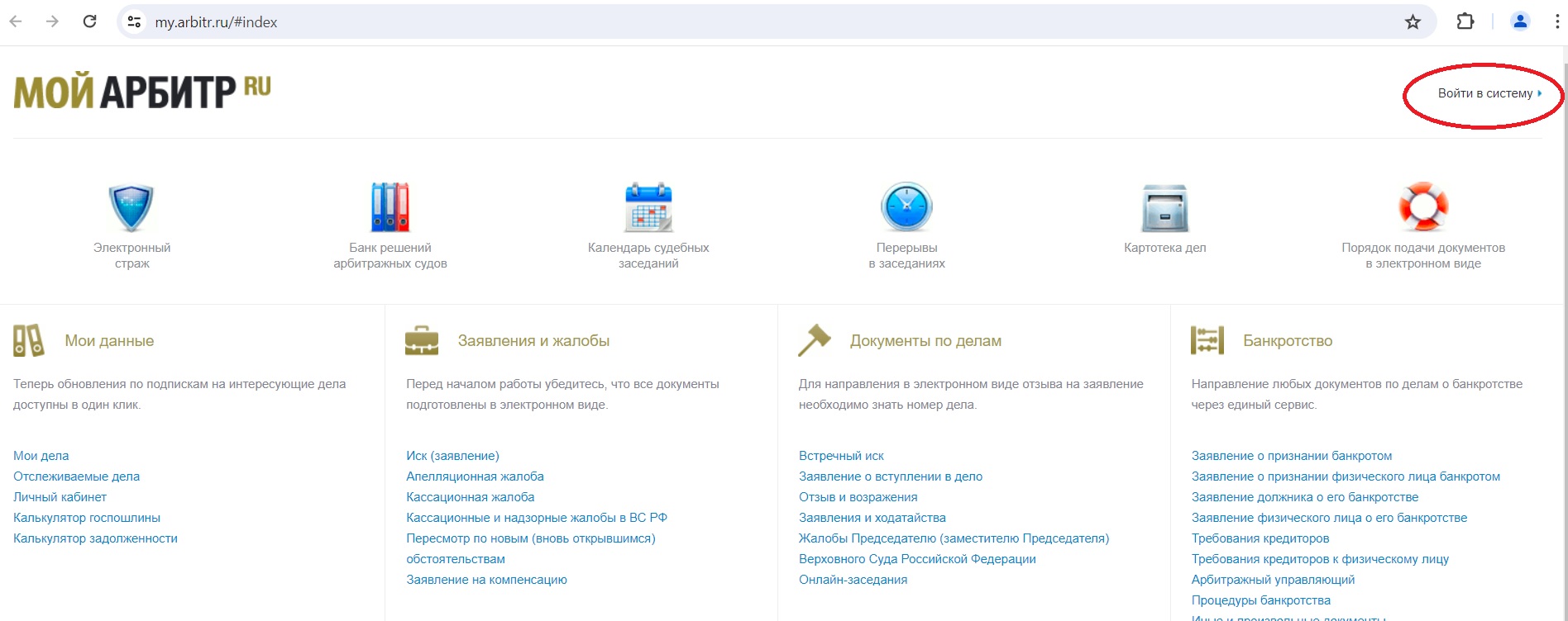 Официальный сайт информационной системы «Мой арбитр».