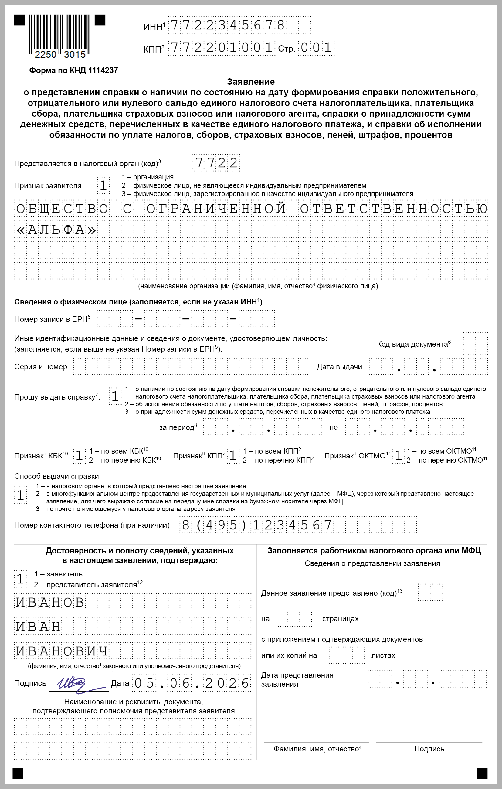 Чтобы получить справку о сальдо ЕНС, об исполнении обязанности по уплате налогов или о принадлежности сумм ЕНП, подайте в ИФНС электронный запрос с кодом нужной справки или заявление на бумаге.