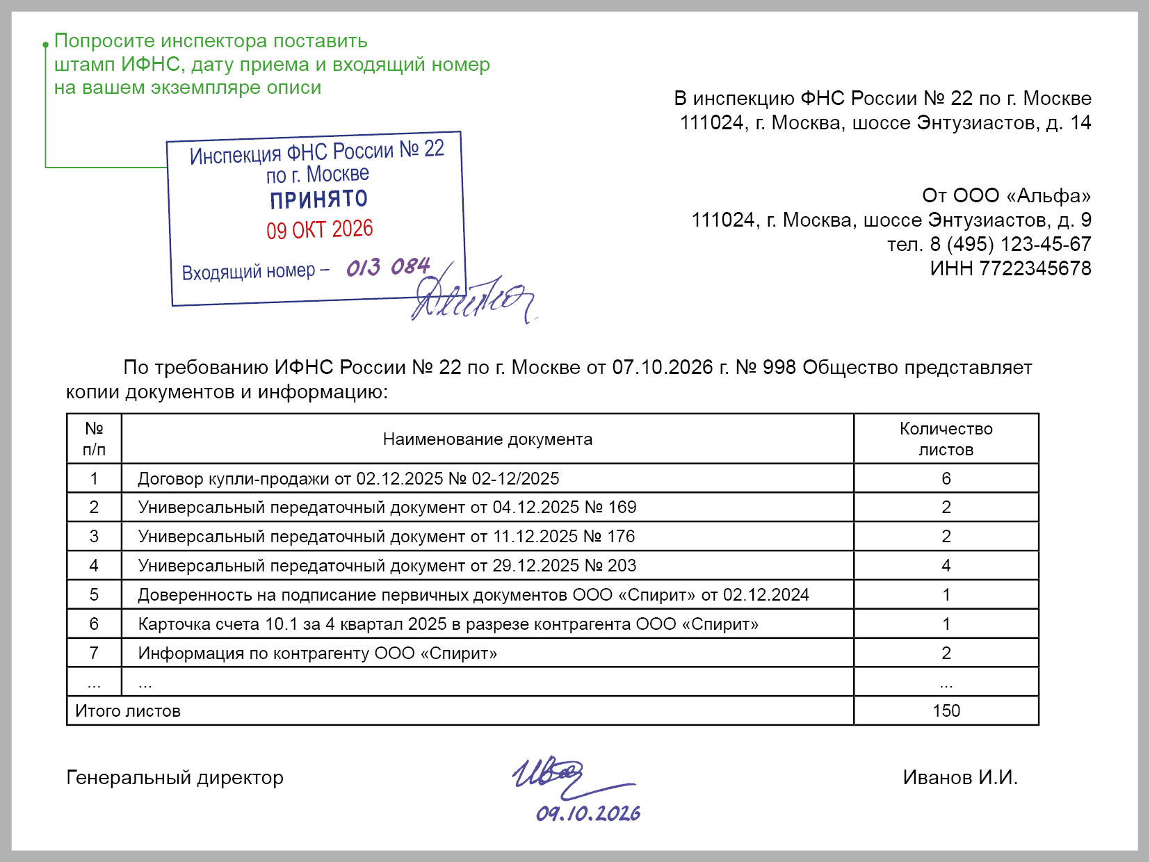 Документы представляют в виде заверенных руководителем копий с сопроводительным письмом и описью, а при отправке по ТКС - в виде сканов (Требования ФНС, Формат электронного документа).