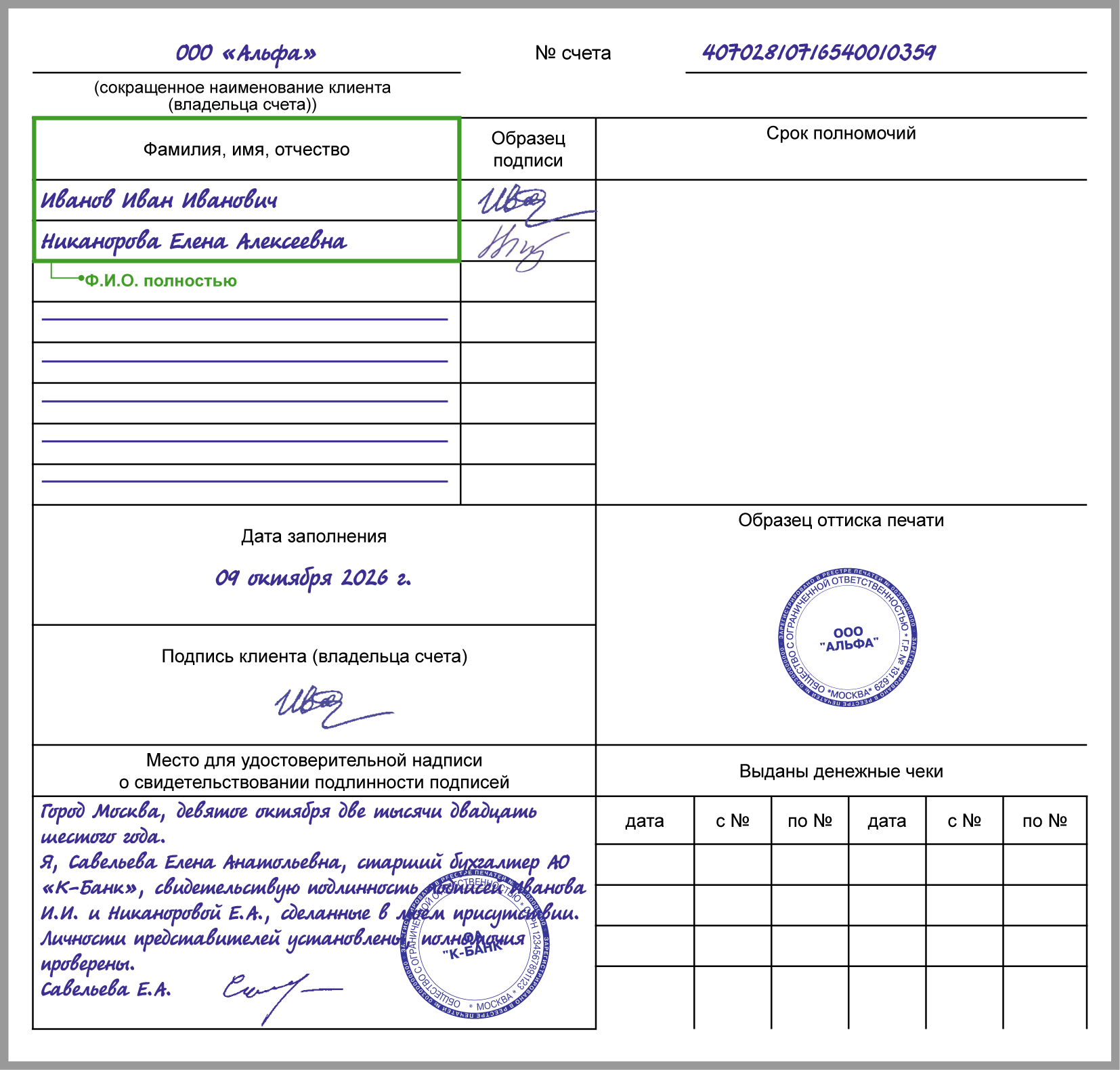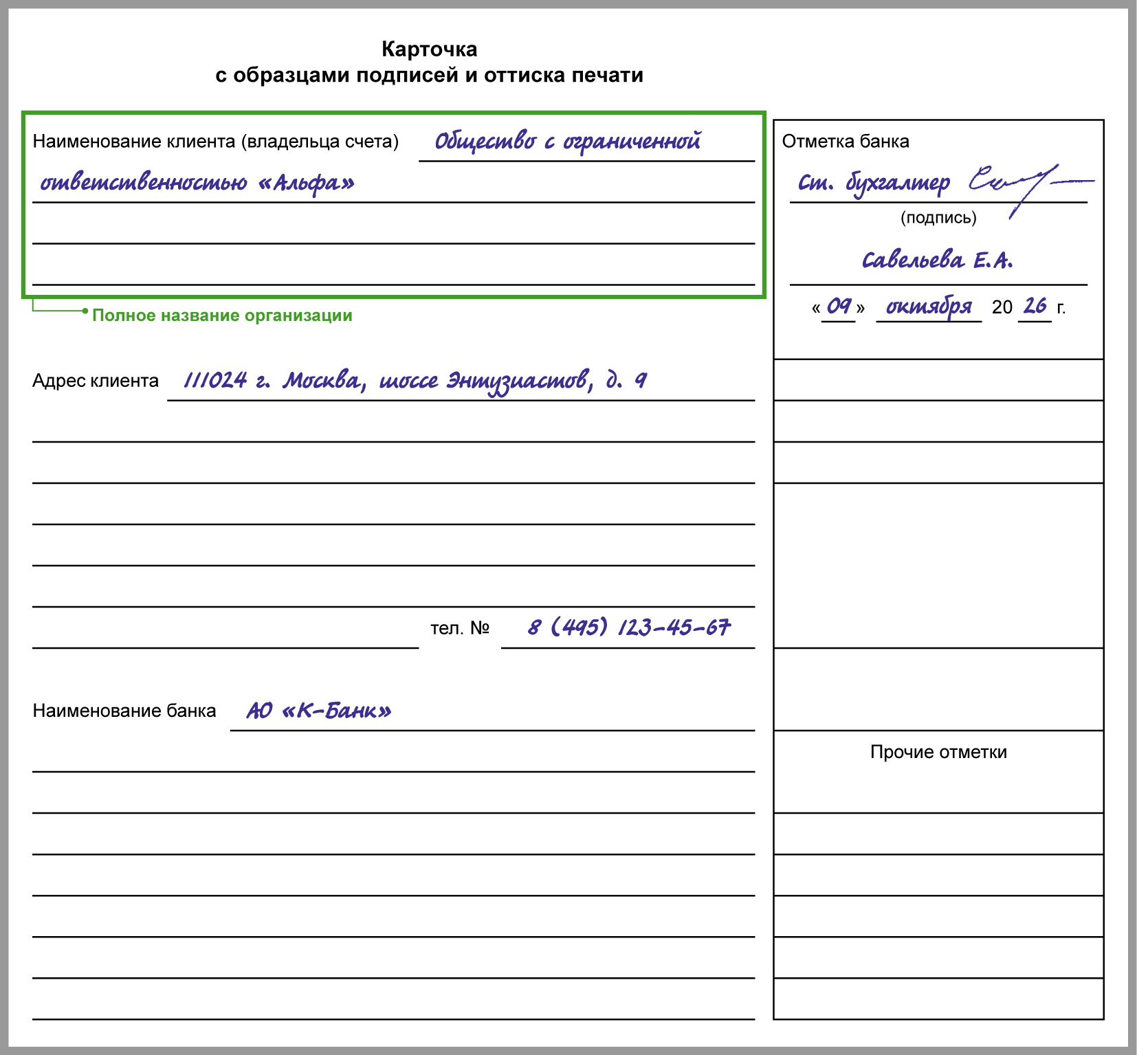 Карточку заполняйте по форме банка. Имеющиеся карточки по форме 0401026 переоформлять не надо (п. п. 5.3, 9.2 Инструкции ЦБ от 30.06.2021 N 204-И).